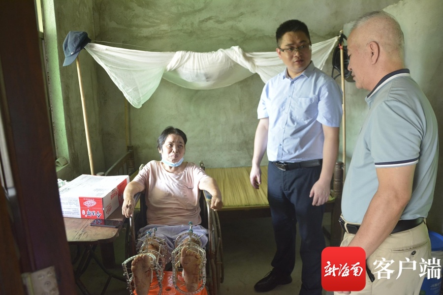 中午12点半,车子经过弯弯曲曲的水泥村道,终于到达了卓亚玉家门前。亲戚上前,帮助医生和护士一起,将行动不便的卓亚玉抬进屋,在嘘寒问暖之后,他们更关心卓亚玉以后能否走路。