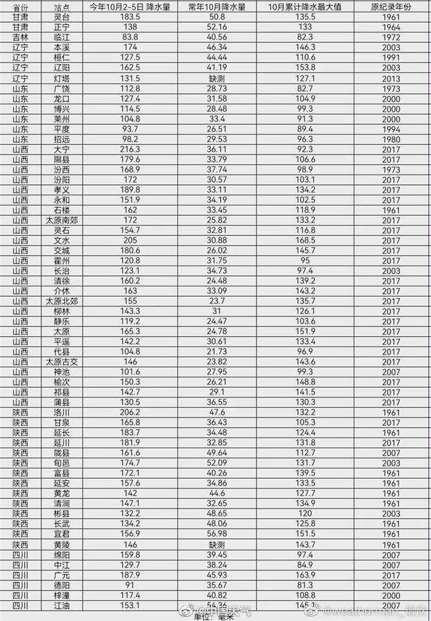 山西近期降雨量大大多于往年同期(图源:中国天气微博)