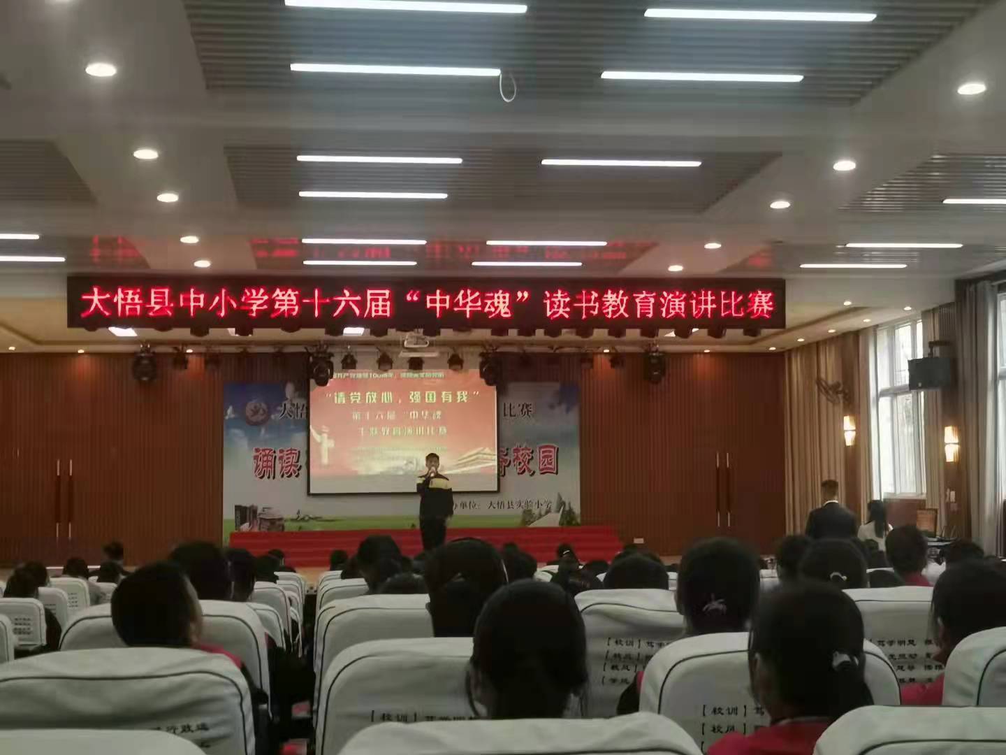 为庆祝中国共产党建党100周年,增强青少年的责任担当意识,进一步激发爱国之情、强化爱国之志,大悟县关工委、县教育局联合举办主题为“请党放心,强国有我”的第十六届“中华魂”读书教育活动,活动采取征文和主题演讲两种形式,分小学、初中、高中三组。作品内容围绕“中华魂”,以作文、文学创作、读后感等多种表现形式,经过层层遴选,来自全县120所中小学70篇征文参赛作品参进入决赛,28名优秀中小学生参加“传承红色基因,争做时代新人”主题演讲比赛活动,整场演讲比赛高潮迭起,掌声不断,评委对参赛征文和演讲进行评分,评选出一二三等奖。