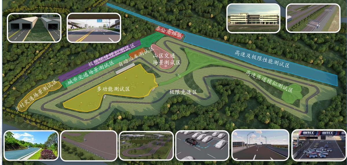 武汉智能网联汽车测试场项目紧邻通顺大道,规划用地面积约1313亩,建设内容包含高速匝道、极限竞速、高速及极限性能、极端环境、城市、乡村、自动泊车、山路模拟等十大场景测试区、四大实验室群,内含中部首条F2级别国际赛车道。未来,其将为智能网联汽车研发、检测、认证等提供“一键式”服务。