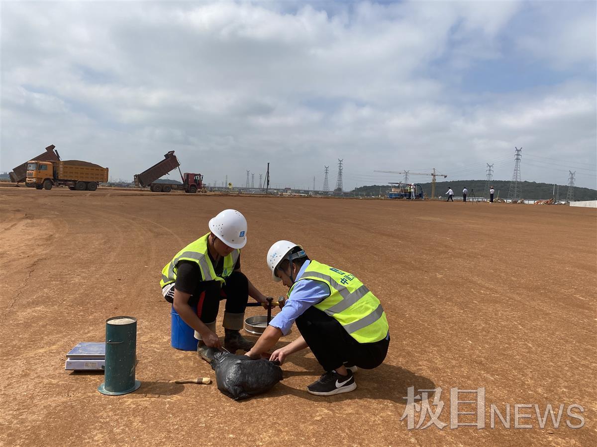 “目前,我们正在进行第五层土的压实度检测。”项目书记徐容向极目新闻记者介绍,该赛道全长4.29千米,测量赛道内任意一点,4米范围内高差则不能超过3毫米。