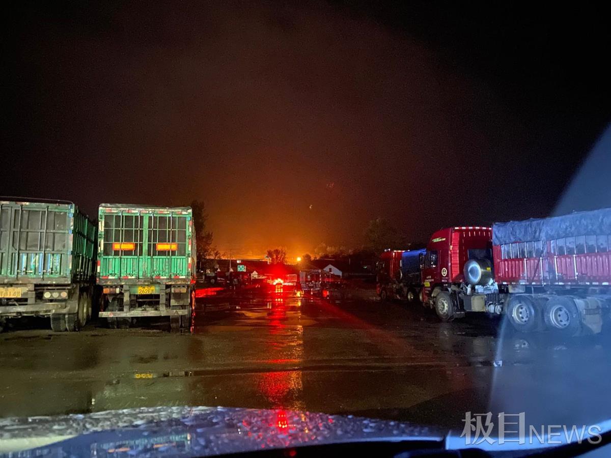 数十辆卡车等候在高速入口(极目新闻首席记者 曾凌柯摄)