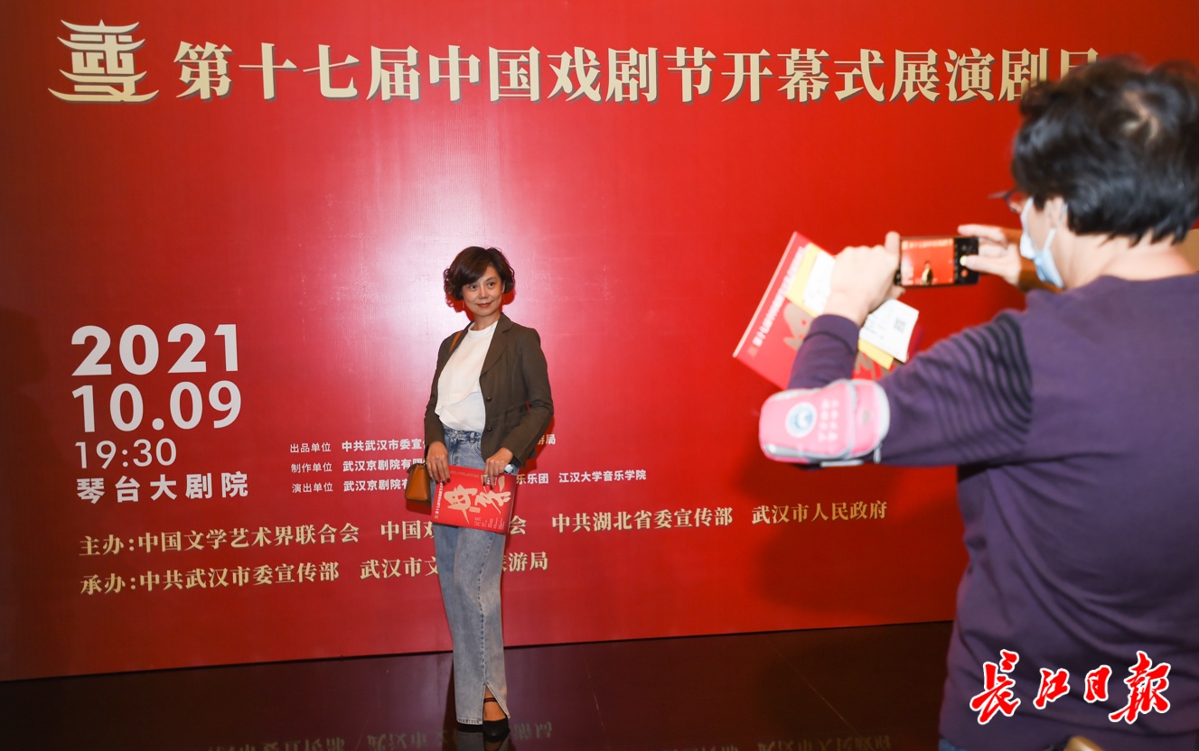 10月9日,中国戏剧节在琴台大剧院开幕,观众现场留影。长江日报记者许魏巍 任勇 摄