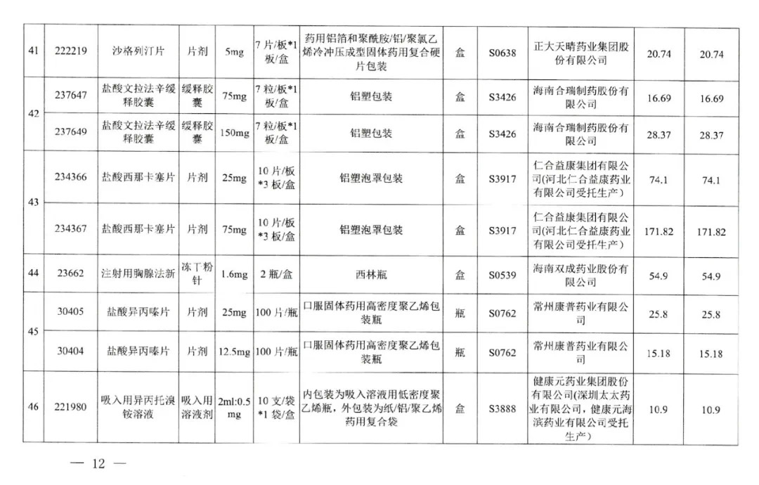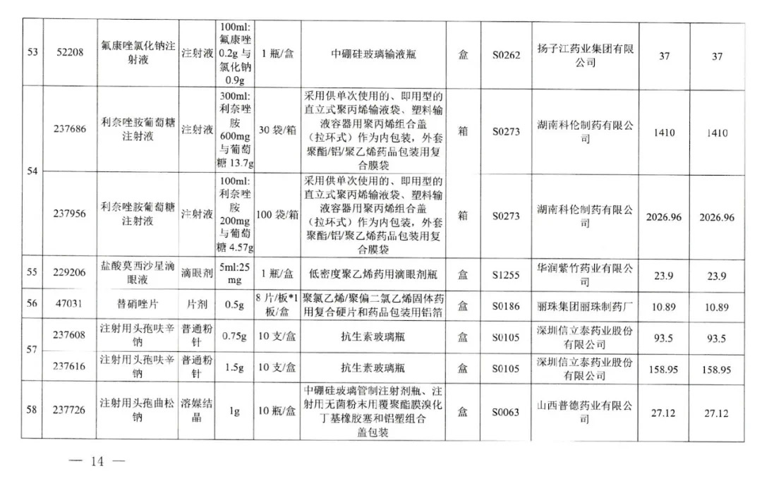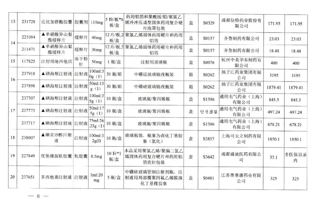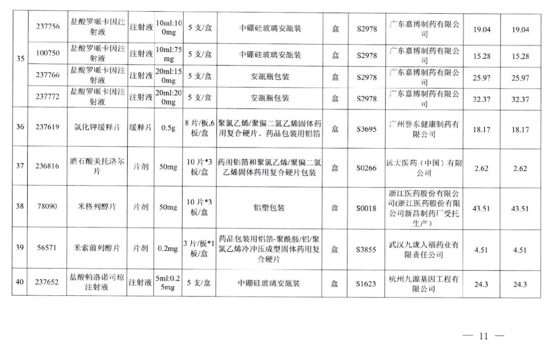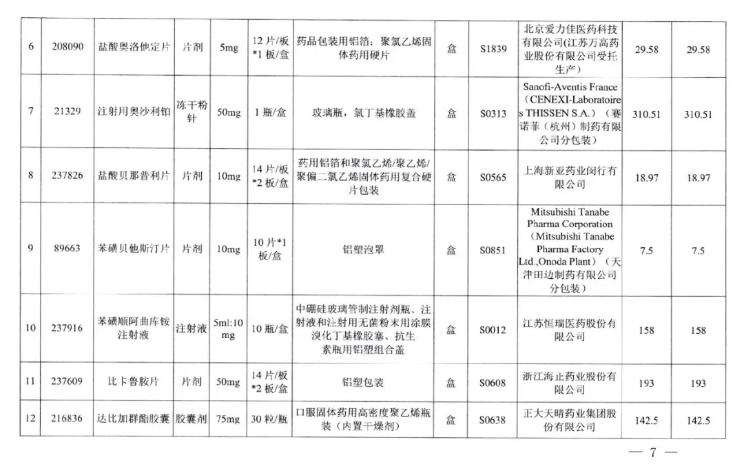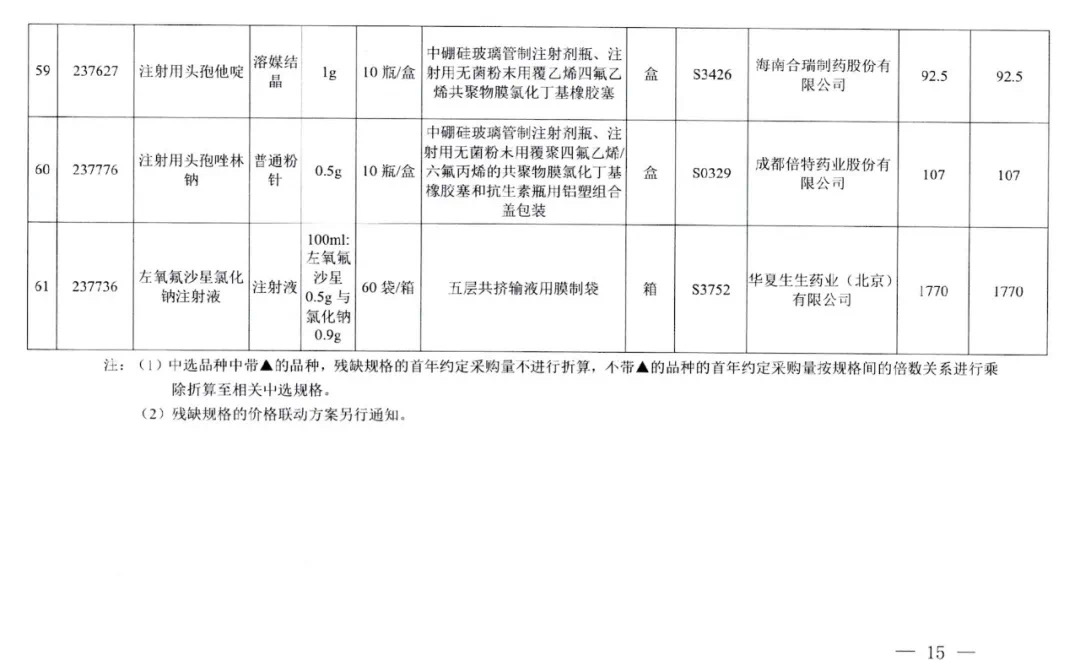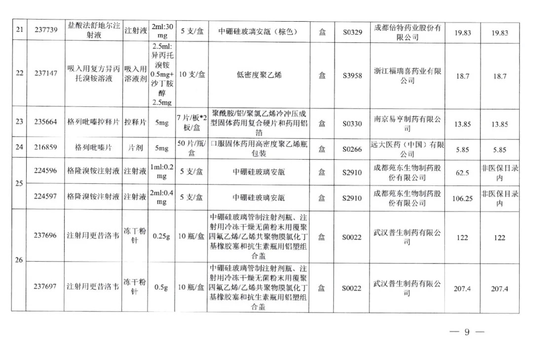 第五批国家组织药品集中采购(湖北)中选供应品种清单