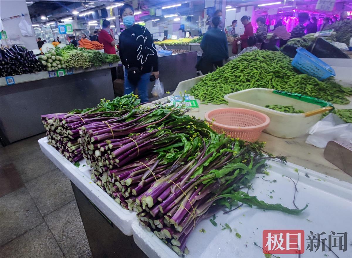 秋天才来武汉报到没几天,10月10日,武汉人最爱吃的红菜薹,就已在三镇许多市场内出售了,这个有“冬令菜”标签的蔬菜来得似乎比往年早一些。