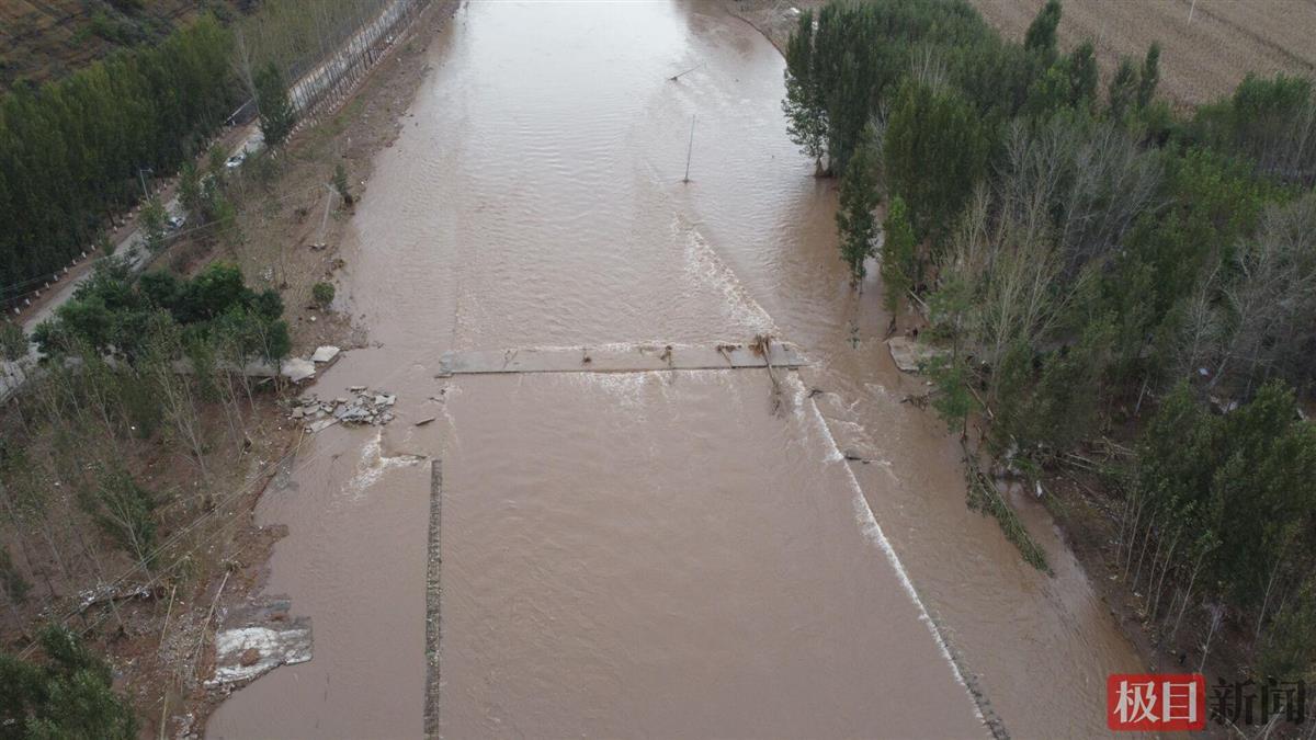 该村村民告诉极目新闻记者,事实上9月22日东里村就下了一场大雨,河水漫过进村的桥面,车辆从那天起就进出不了村了。而村民进村出村,只能靠走另一座横跨沁河的钢索吊桥。但降雨此后并未中止,10月6日,这座离水面10余米高的钢索吊桥也被洪水冲毁。村民说,印象中从来没遇到过这么大的暴雨。
