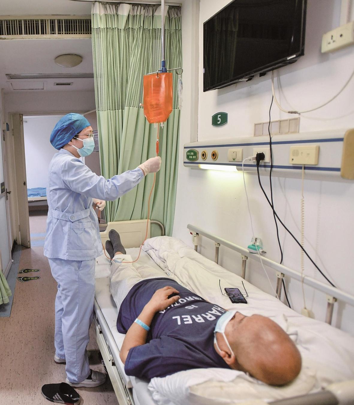 医护人员昨为患者使用降价后的抗癌药品 楚天都市报极目新闻记者王永胜摄