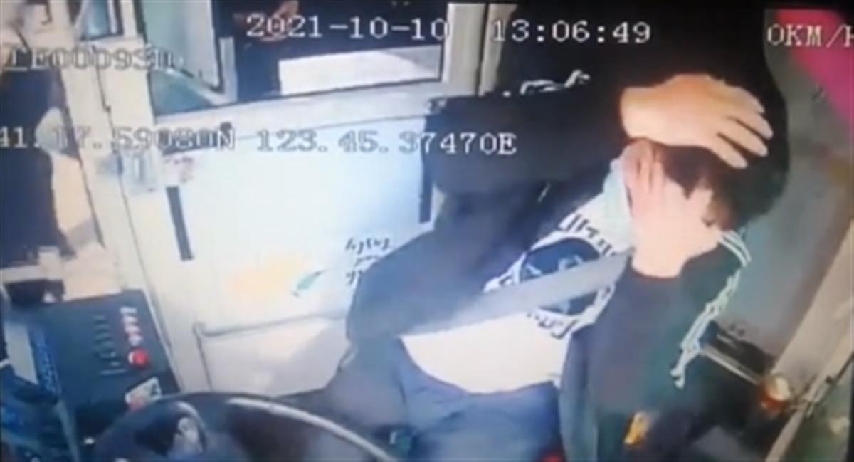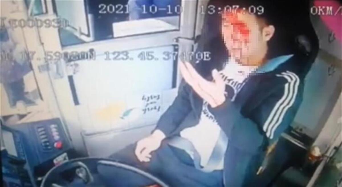 公交司机满脸鲜血(网络截图)