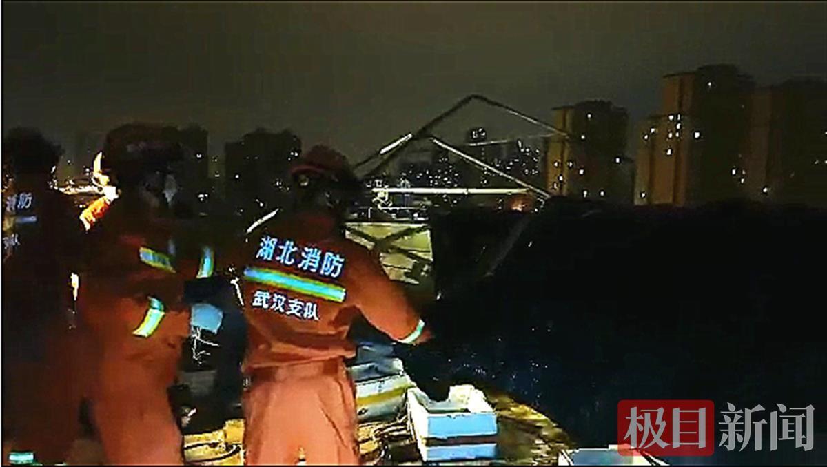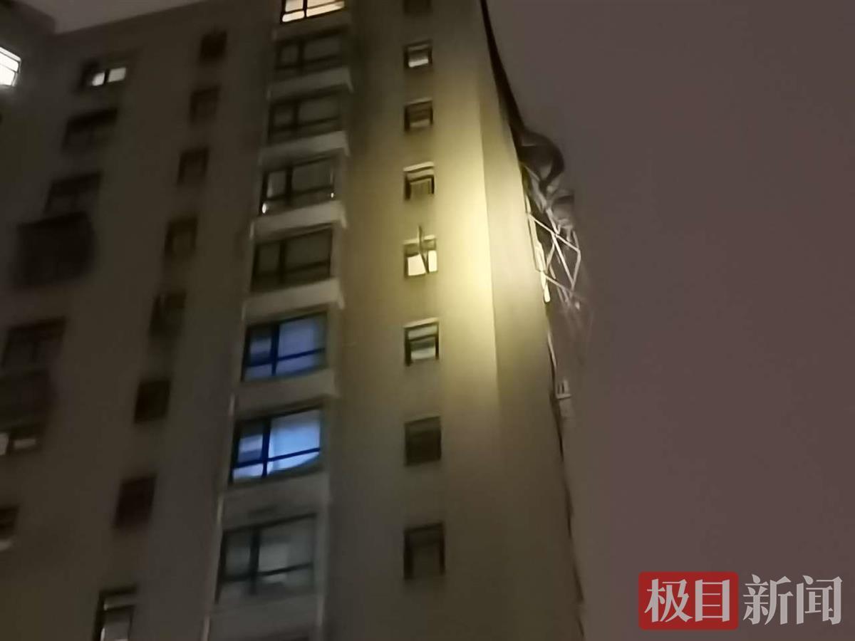 10月10日晚上10时许,在武汉市汉阳区江腾苑小区一栋17层居民楼,楼顶的钢结构遮阳棚被强风吹翻,挂在顶楼的外墙上摇摇欲坠,墨水湖站消防员快速到场处置,成功化解险情。