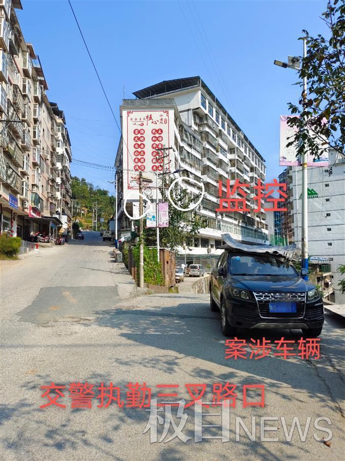 10月8日上午,极目新闻记者来到现场探访。这里是一个三岔路口,一条通往秧田河方向,一条通往集镇,一条通往集镇后街。路口有一个监控探头,邱德成的车还停在事发现场。