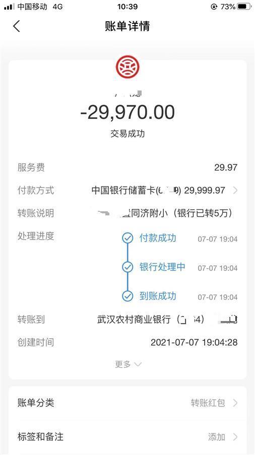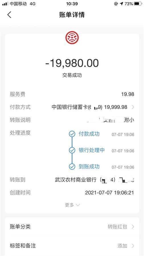 “想上孩子上一所优质学校,所以就相信了对方,我和朋友一共交了20万元。”郁明明(化名)女士告诉极目新闻记者:“今年7月,同事介绍了一个熟人,他自称可以把我家孩子安置到一所优质小学就读,但需要费用10万元,当时想都没想就分批把钱转给了对方,和我一起转账的还有朋友李涛(化名),他也交了10万元。”