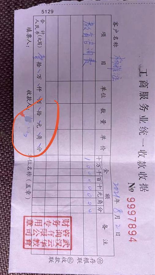 通过中间人詹林西,郁明明女士把钱转给了一家名为武汉云华教育咨询有限公司的负责人严云龙。李涛说:“当时交钱的时候,自己担心时间来不及,我们就在短期内分批把钱转过去了。”到了9月13日,新学期开学已经两周了,孩子还是只能在对口学校就读。于是,两名家长开始与对方协商退款,对方却一拖再拖。