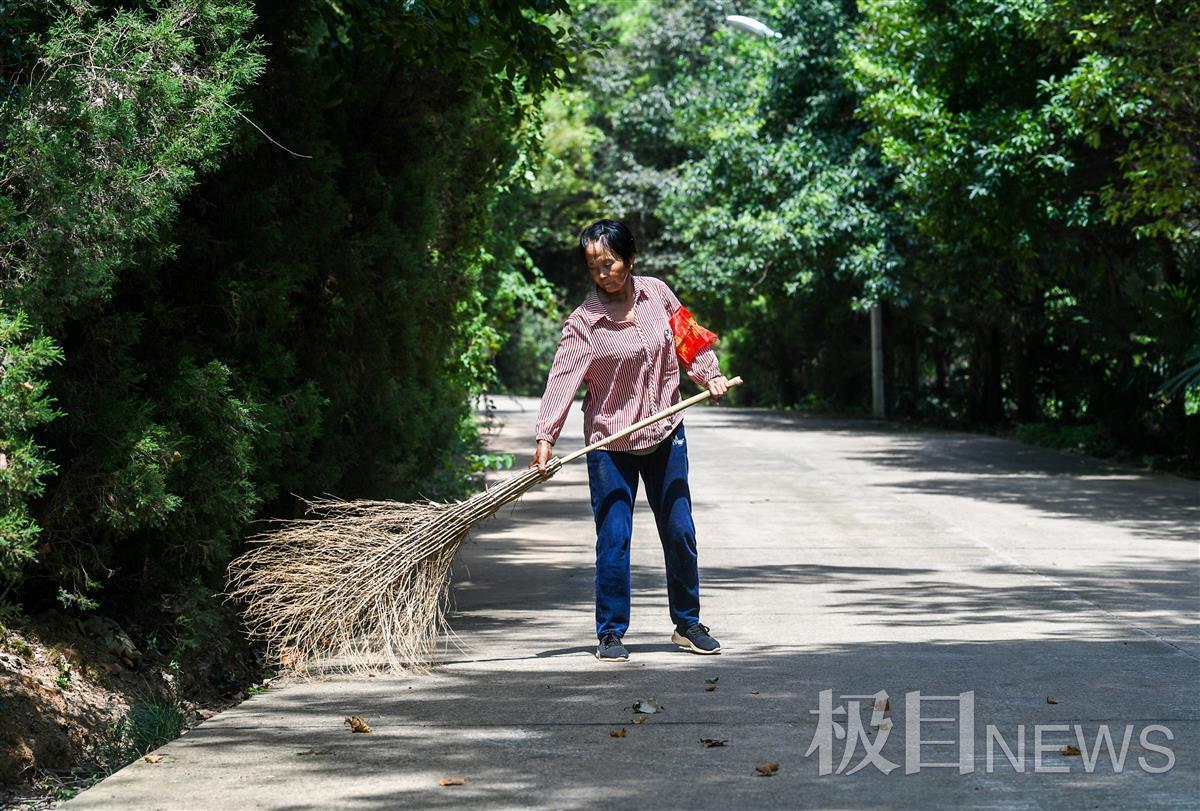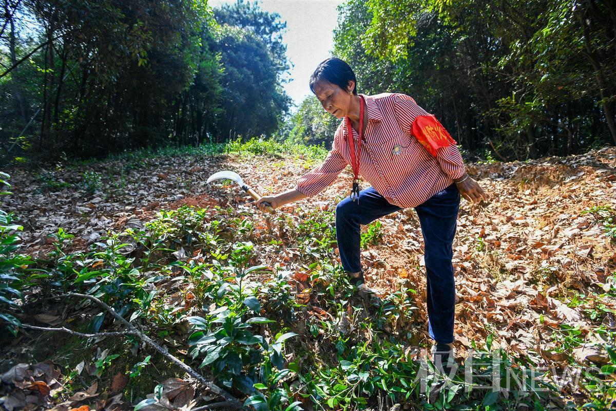 64岁的护林员曹菊花,手持一把弯镰刀,穿行在其中,无暇顾及这山中美景。秋季天干物燥,是防火重要的时节,除枝桠、除杂草,让防火道保持干净是她最重要的工作。