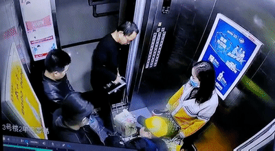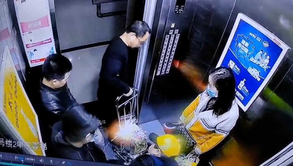 现场监控视频显示,电梯内有两女一男三名乘客,正在下行。开门后,两名男子进入,其中一名男子推着一台装有电瓶的小推车。进入后才一两秒钟,电瓶就擦出火花,电梯中三名居民吓得快速跑出了轿厢。之后,电瓶还在不断冒烟。