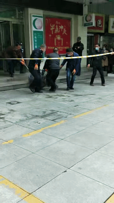 附近居民张先生告诉极目新闻记者,野猪在11日晚就跑进银行自助服务大厅,工作人员早上上班发现后把门关掉,并在外面围了警戒线。有不少居民到场围观,安保人员一直在维持秩序。上午10时左右,工作人员协调后调来麻醉枪制服了野猪,并将其搬运上车带走。