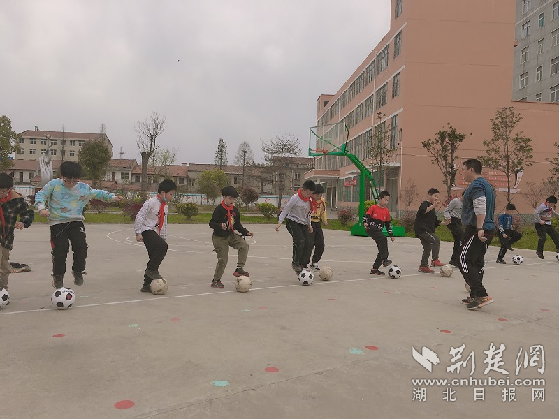 足球课上孩子们学得很带劲。通讯员周蓓 摄