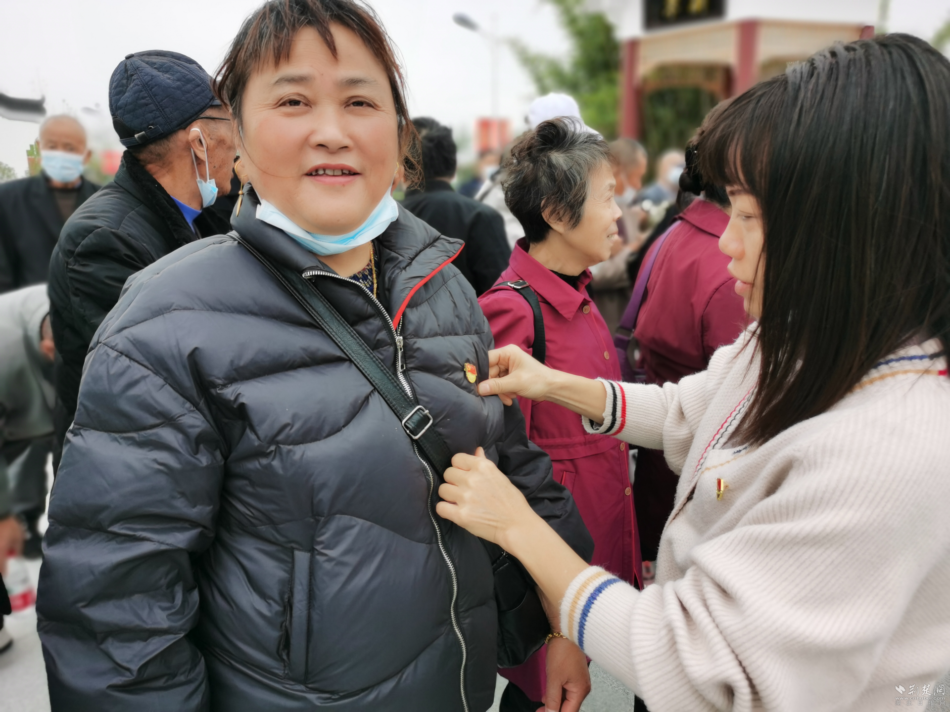 老干部们佩戴党章。通讯员万喆 供图