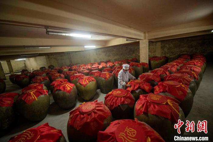 工人正在检查煨酒窖藏情况。 吴德军 摄