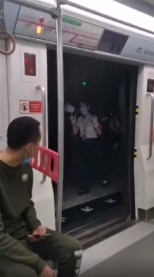 据网传视频显示,重庆地铁一车厢门打开,该车处于停站状态,多名乘客正在车厢内。该列车外的站台一片漆黑,多位市民使用手机的手电筒进行照明。这时,列车广播播报称,“各位乘客,现在是临时停车。”