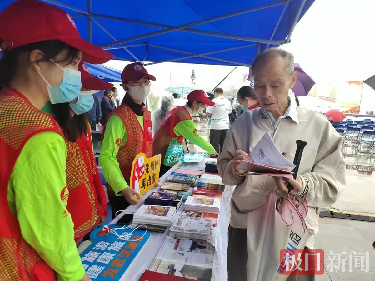 上午9时,活动开幕。武汉文旅志愿者穿着统一服装,精神饱满,在文旅展台中摆放着丰富多样的文化旅游信息宣传手册,其中包括红色旅游地图、武汉乡村游手册、演出信息、图书信息、夜游武汉推荐等20余种。很多老年人纷纷来到展台中,兴致高昂地咨询文化旅游信息。在旅游方面,黄鹤楼公园、园博园景区、中科院为60岁以上提供免费入园;文化方面,中山公园为老人提供古琴表演等文化活动。