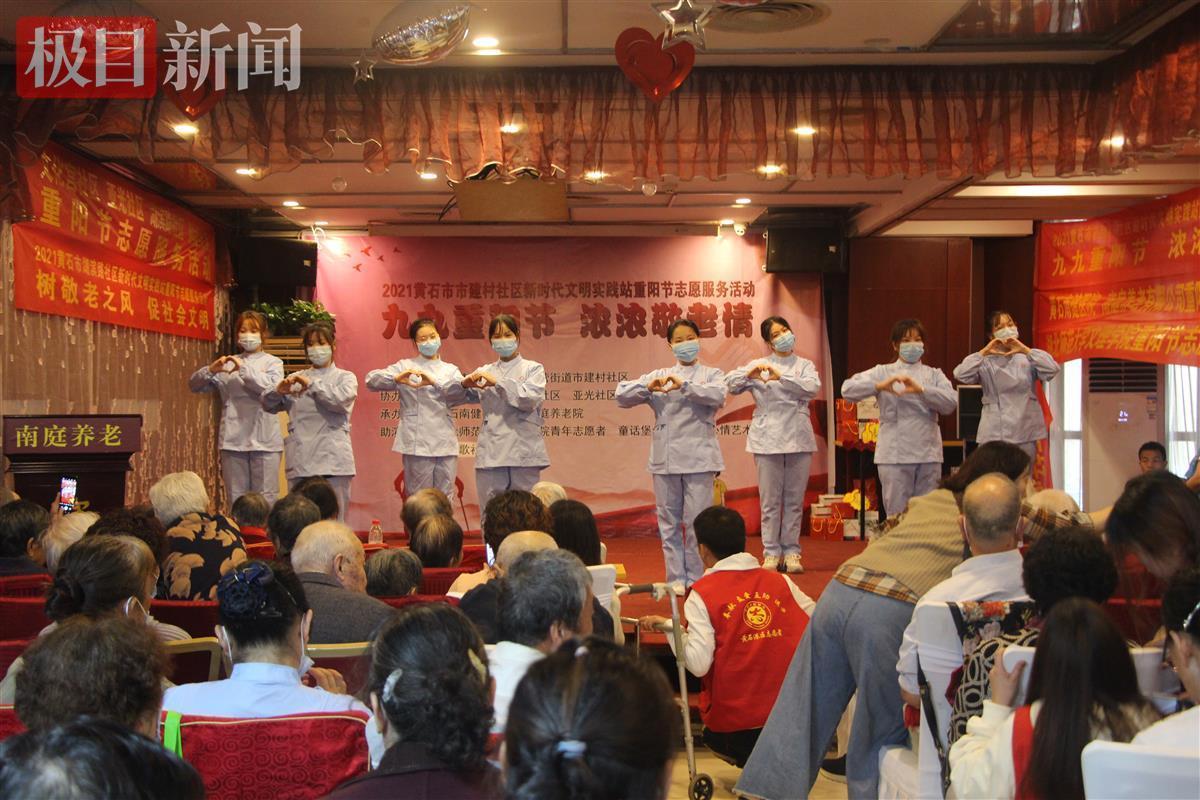 “祝你心想事成,早日找到孙子的亲生父母,安享晚年……”10月14日上午,重阳节当天,在黄石南庭养老院,黄石4个社区、200余名白发苍苍的老人齐聚一堂,共同祝福陈婆婆。本报先后两次报道(8月31日要闻版和9月3日荆楚版),黄石市西塞山区磁湖社区75岁的居民陈婆婆,由于身体每况愈下,无力照顾16岁的养孙,委托本报帮忙为其寻找孩子的亲生父母,在将自己价值百余万元的财产留给孩子后,老人最后的心愿是想“一个人安安静静地在养老院度过余生”。经过一个多月的寻找,最终并没有找到陈婆婆养孙的亲人,但在陈婆婆一路之隔的黄石南庭养老院负责人获悉老人的义举后,精心进行了筹备,为这名大爱老人过了一个特别的重阳节。