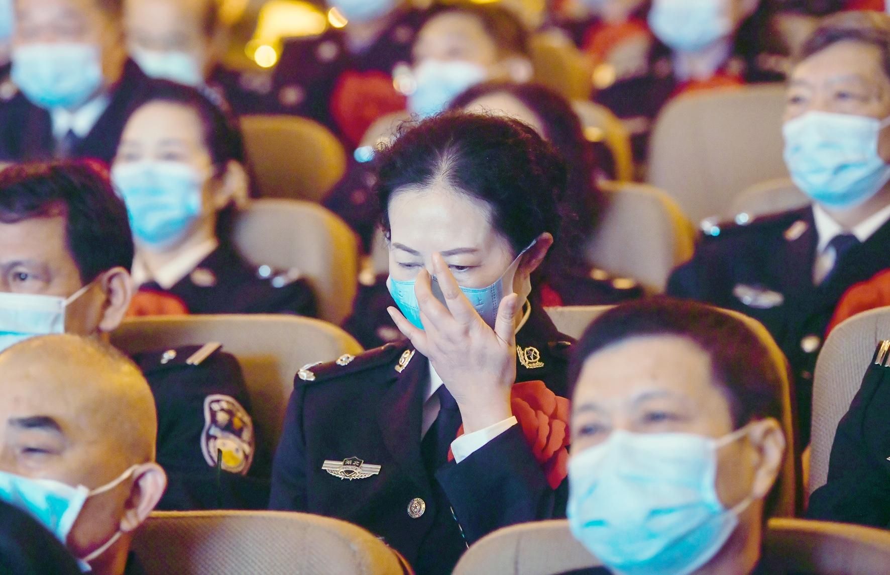 庄重简朴的仪式上播放了短片《我选择》。片中,武汉市公安局强制隔离戒毒所医务民警柯良含泪说道:退休了,我要做的第一件事是带上母亲的照片旅行,坐火车,看天安门……