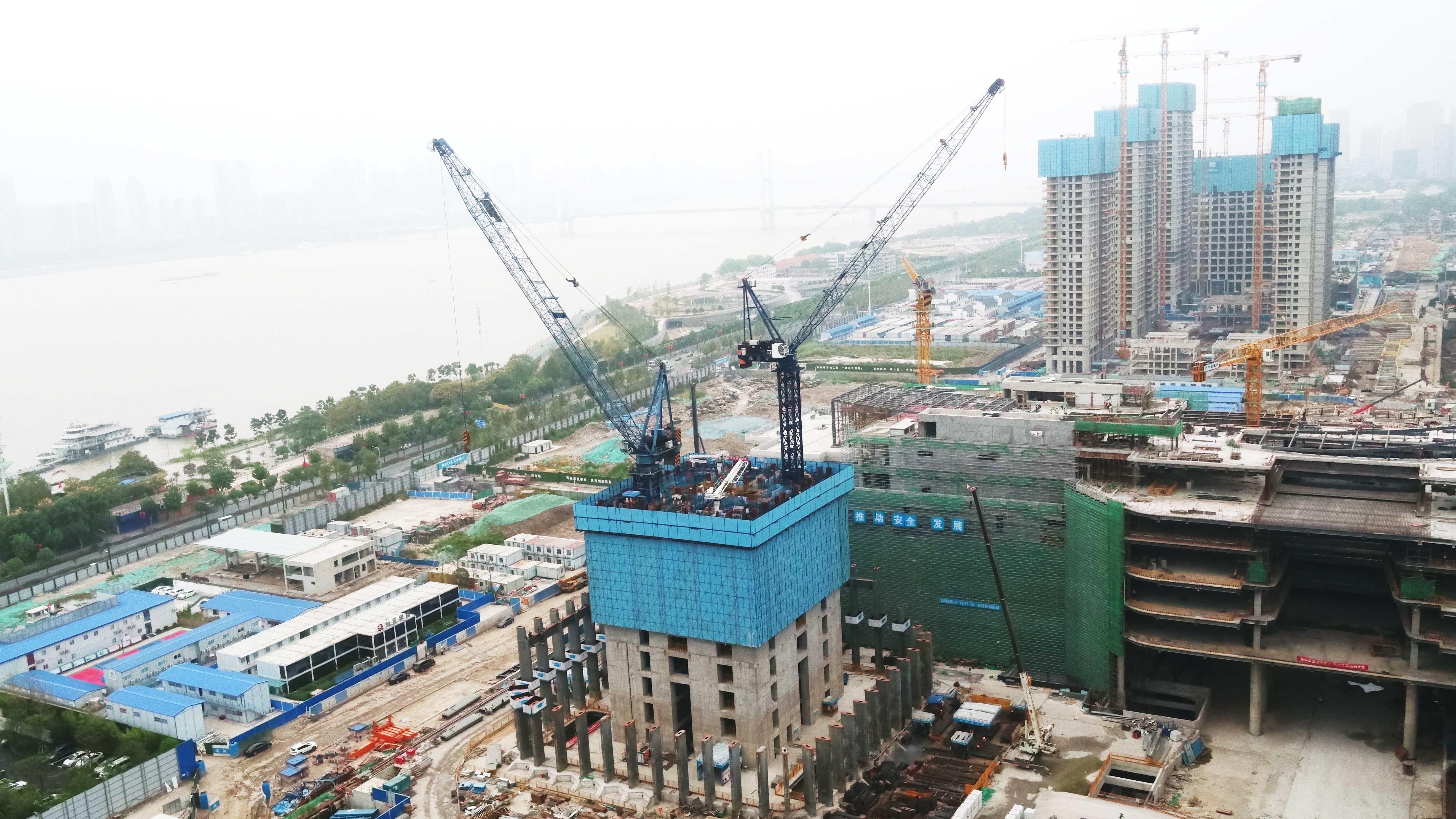 如今,在武汉绿地中心一侧,最新一代的“空中造楼机”正应用于武汉长江中心项目,在它的作用下,该项目未来将“长”到380米。