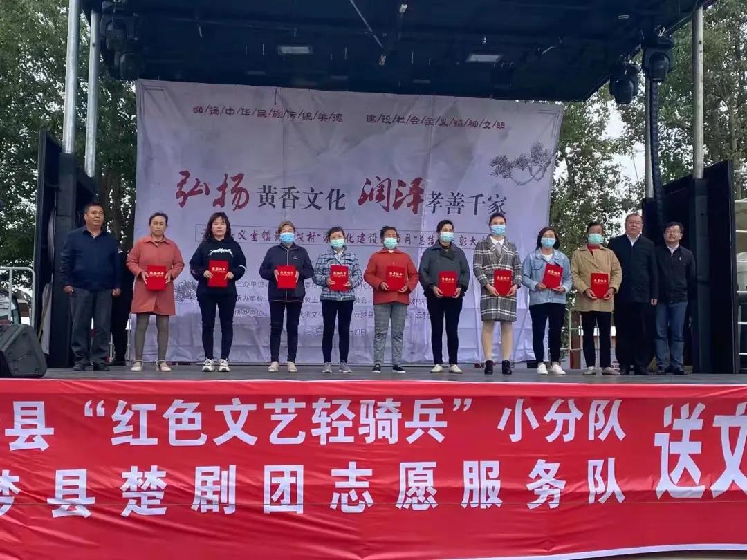 10月14日下午,云梦县“弘扬黄香文化润泽孝善千家”重阳节活动在义堂镇黄土坡村委会广场举行,文艺演出、志愿服务、表彰孝贤、集体生日会等丰富多彩的活动,为老人们送去浓浓关怀意和慰问情。
