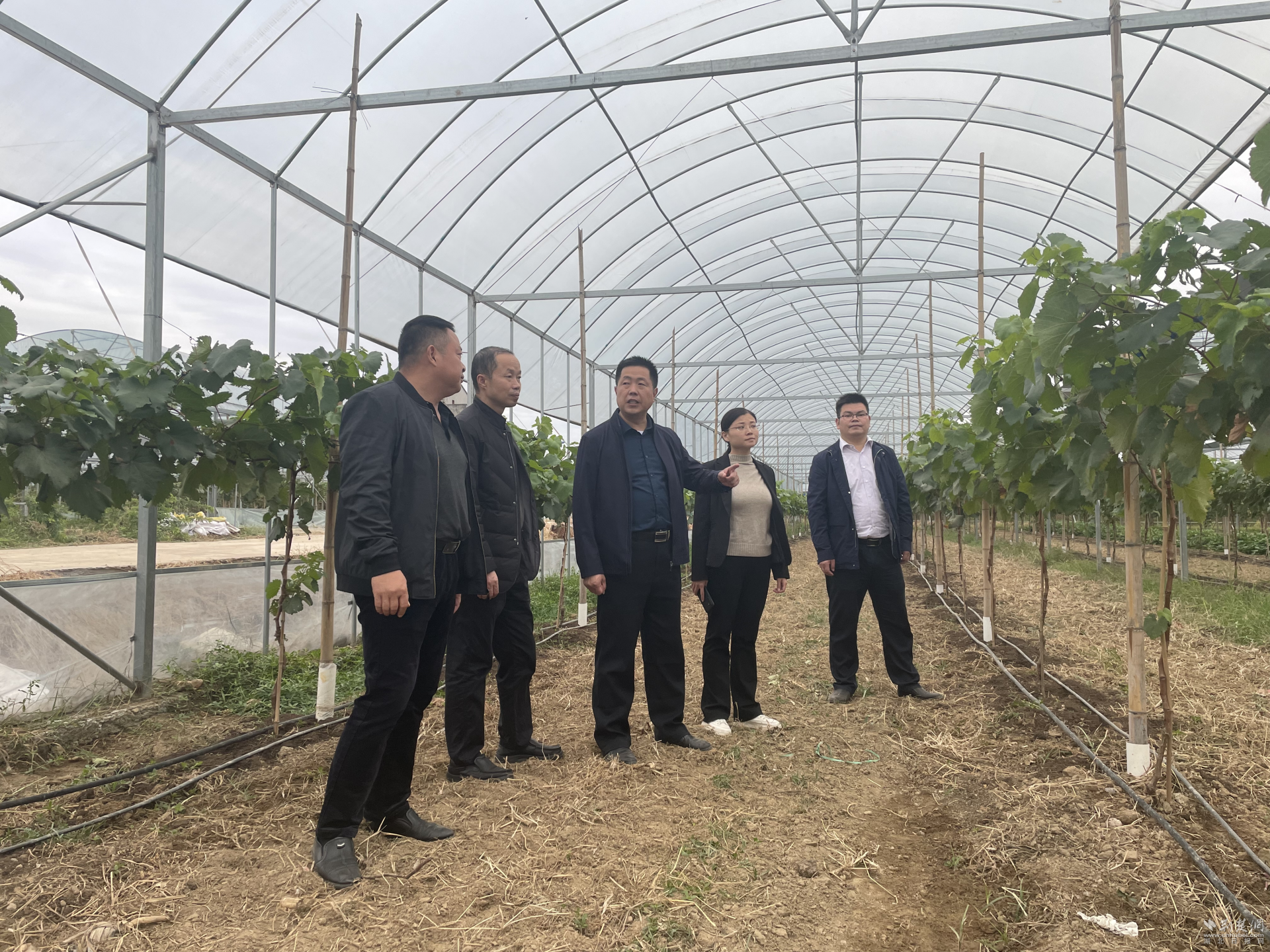 镇党政负责人在农业产业基地协商解决问题。徐志勇 摄
