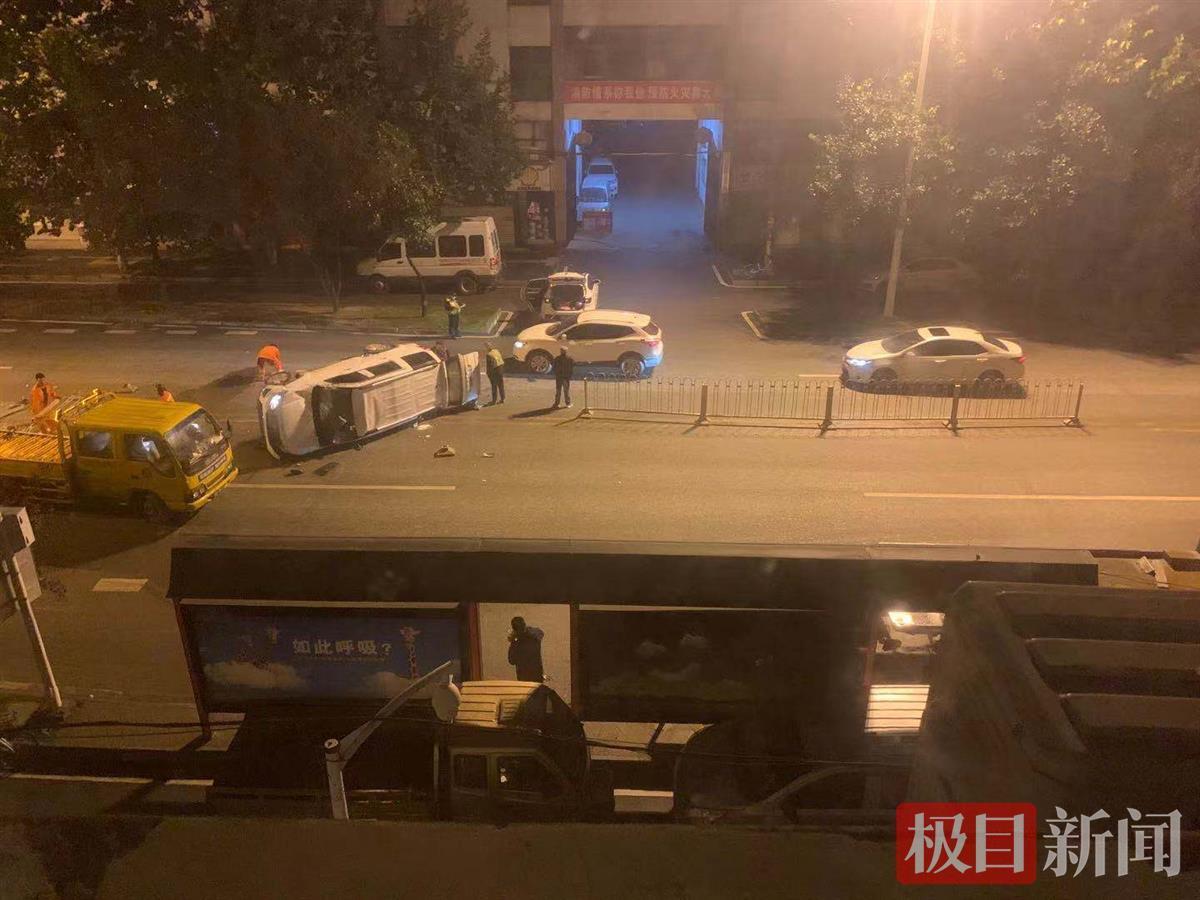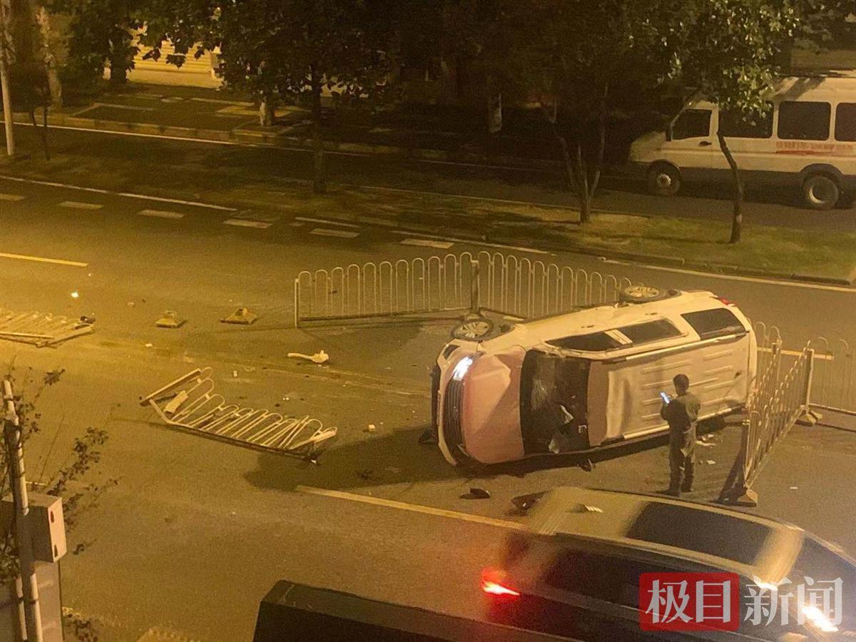 极目新闻记者从交警部门了解到,凌晨4时30分许,在接到报警后,交警立即赶到事发现场进行处置。经调查,事故原因为下雨后地面湿滑,车辆驾驶员路过事发地时操作失误,导致车辆撞上隔离护栏后侧翻,好在事故中没有人员伤亡。交警随后调来车辆将事故车辆扶正后拖走,同时将路面破损护栏运走。凌晨5点30分许,现场清理完毕。