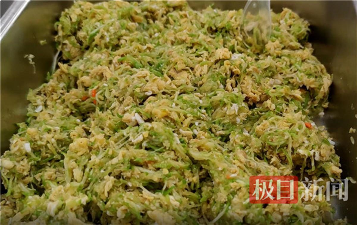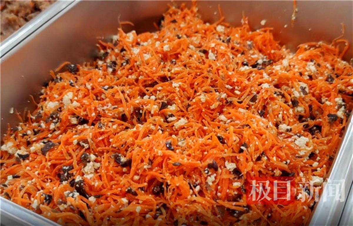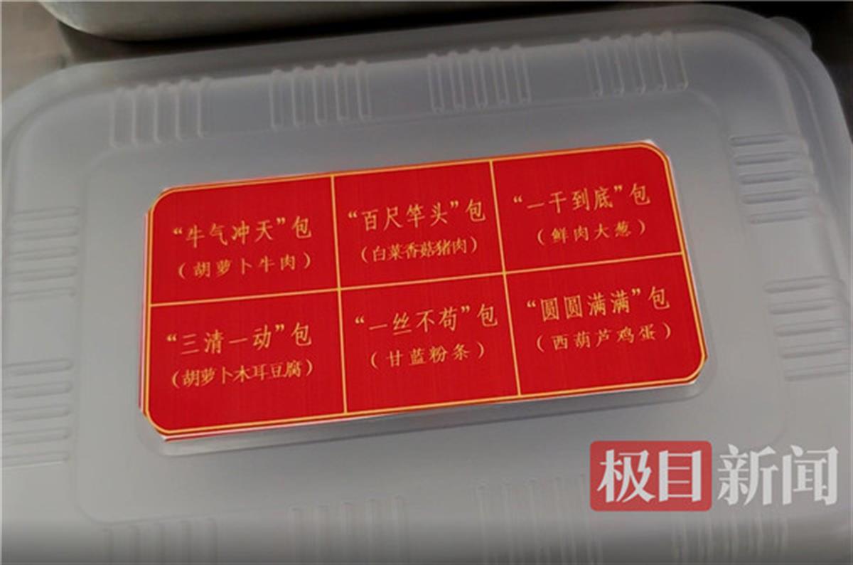 极目新闻记者在现场看到,有多名工作人员正在进行包子的制做。一名工作人员向记者介绍称,这次一共准备了六种馅的包子,分别为胡萝卜牛肉(“牛气冲天”包)、白菜香菇猪肉(“百尺竿头”包)、鲜肉大葱(“一干到底”包)、胡萝卜木耳豆腐(“三清一动”包)、甘蓝粉条(“一丝不苟”包)、西葫芦鸡蛋(“圆圆满满”包)。