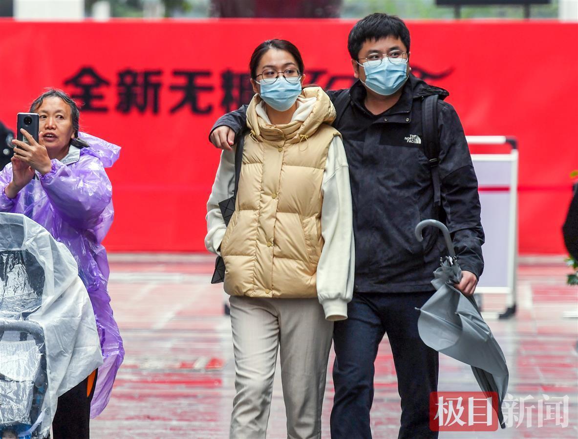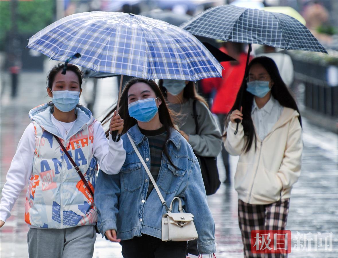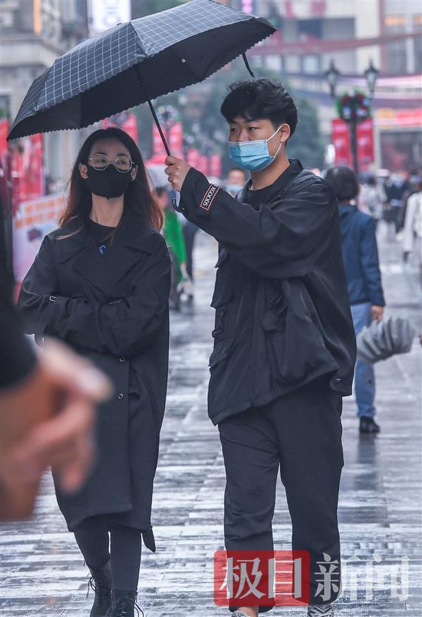 10月15日,北方来的冷空气“接力”到达武汉,三镇气温持续下降。白天气温虽在16℃左右,但飘洒的秋雨伴随着北风,人们体感温度将直线下降。武昌汉街上,不少行人已穿上初冬的薄袄,在街口和高层楼之间的狭长通道,风力明显加大,形成“狭管效应”,让人感觉“更冷”。
