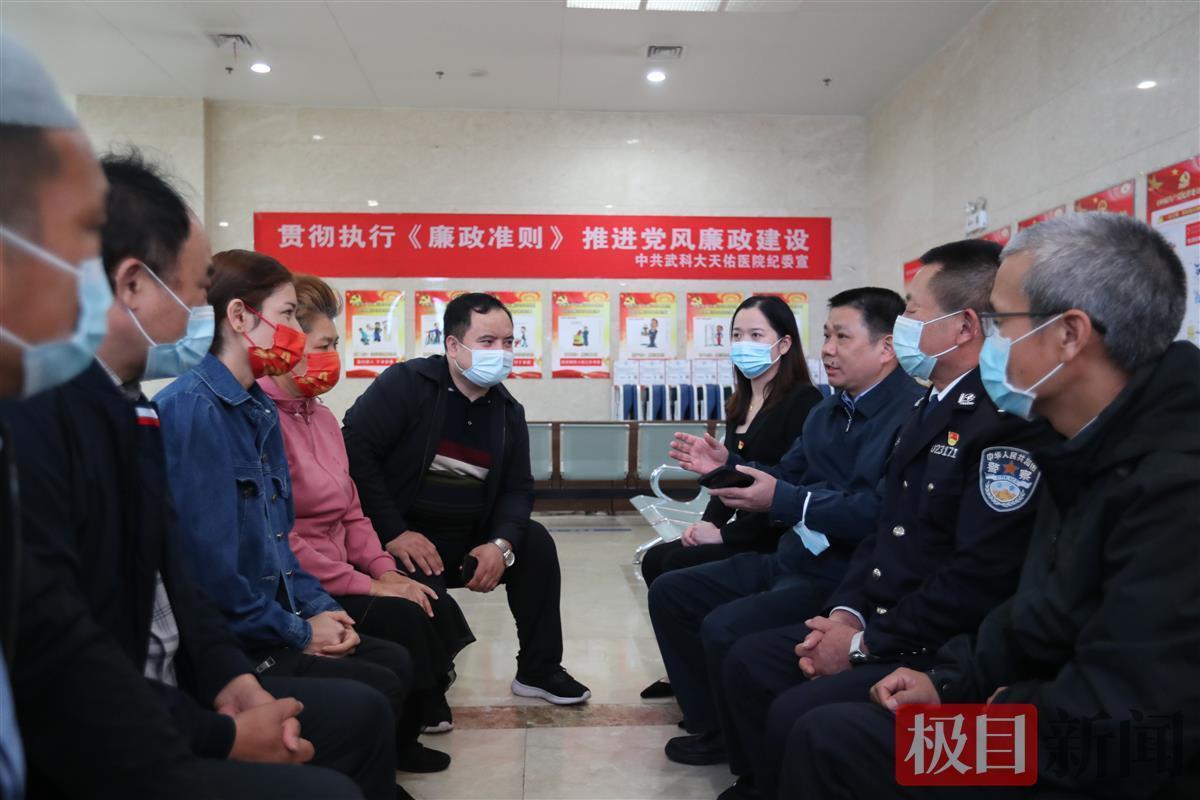 9月22日,市、区民宗部门及时到天佑医院看望阿迪力江·艾尔肯,安慰鼓励伤者家属。同一天,天佑医院组建专家小组研讨制定救治方案,洪山区成立工作专班做好病人家属后勤服务工作。24日,市、区各部门和医院召开专题会,研究救治工作具体步骤和安排。