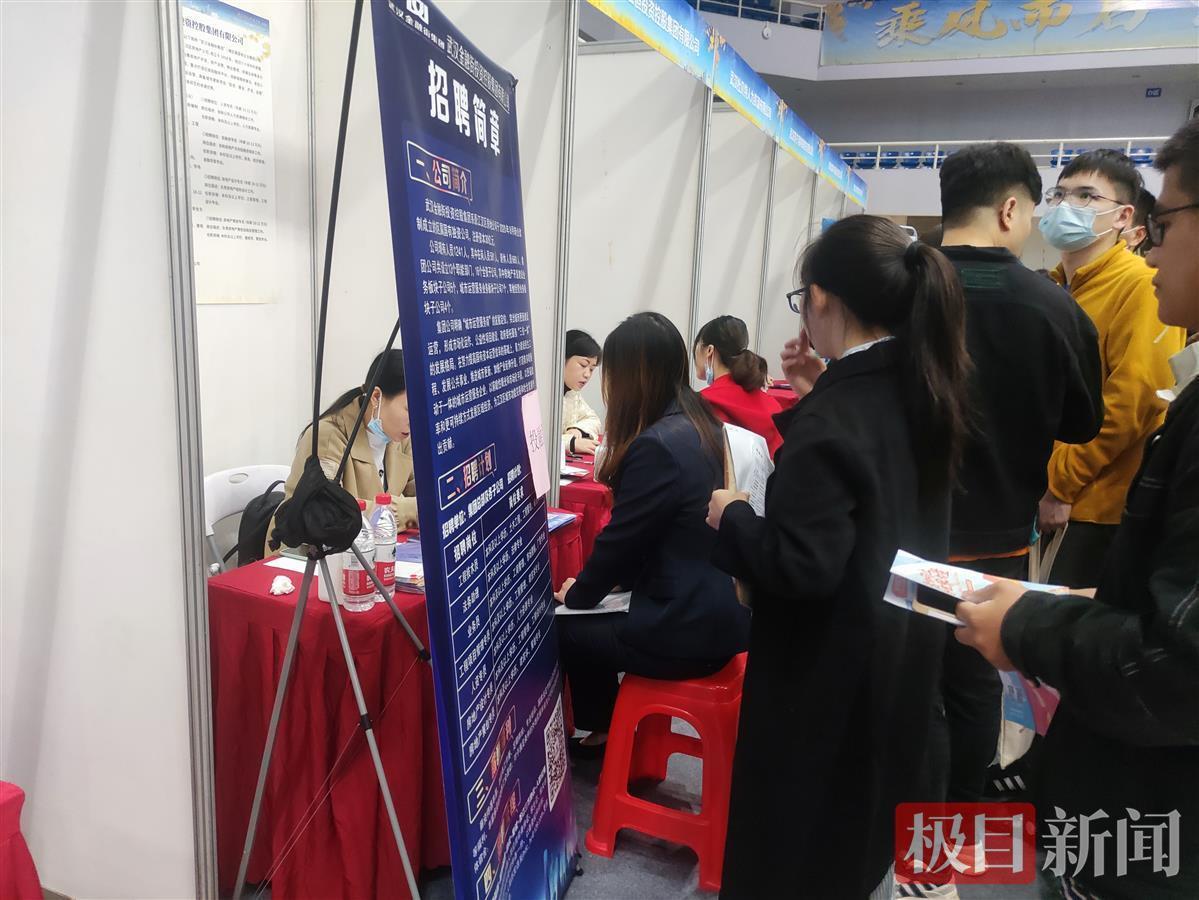 16日上午,虽然天公不作美,早晨一度风雨交加,但冒雨前来求职的大学生络绎不绝。极目新闻记者在现场了解到,参会企业共有50余家,涵盖银行、证券、保险等金融行业各领域,同时兼顾了工程设计、商务商贸、信息技术、律所等其他行业,提供就业岗位2300余个。而各家企业也诚意满满地“秀”出各自优势,获得了不少大学生的青睐。