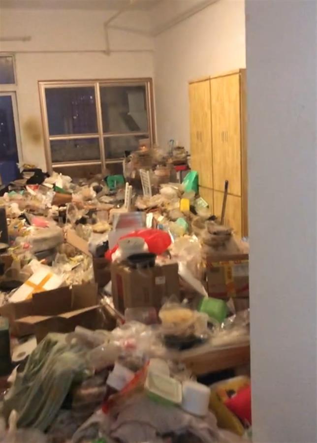 10月15日,在安徽合肥,一租户在出租屋里堆满了日常留下来的垃圾,房间内几无下脚之处,令房东和朋友瞠目结舌。