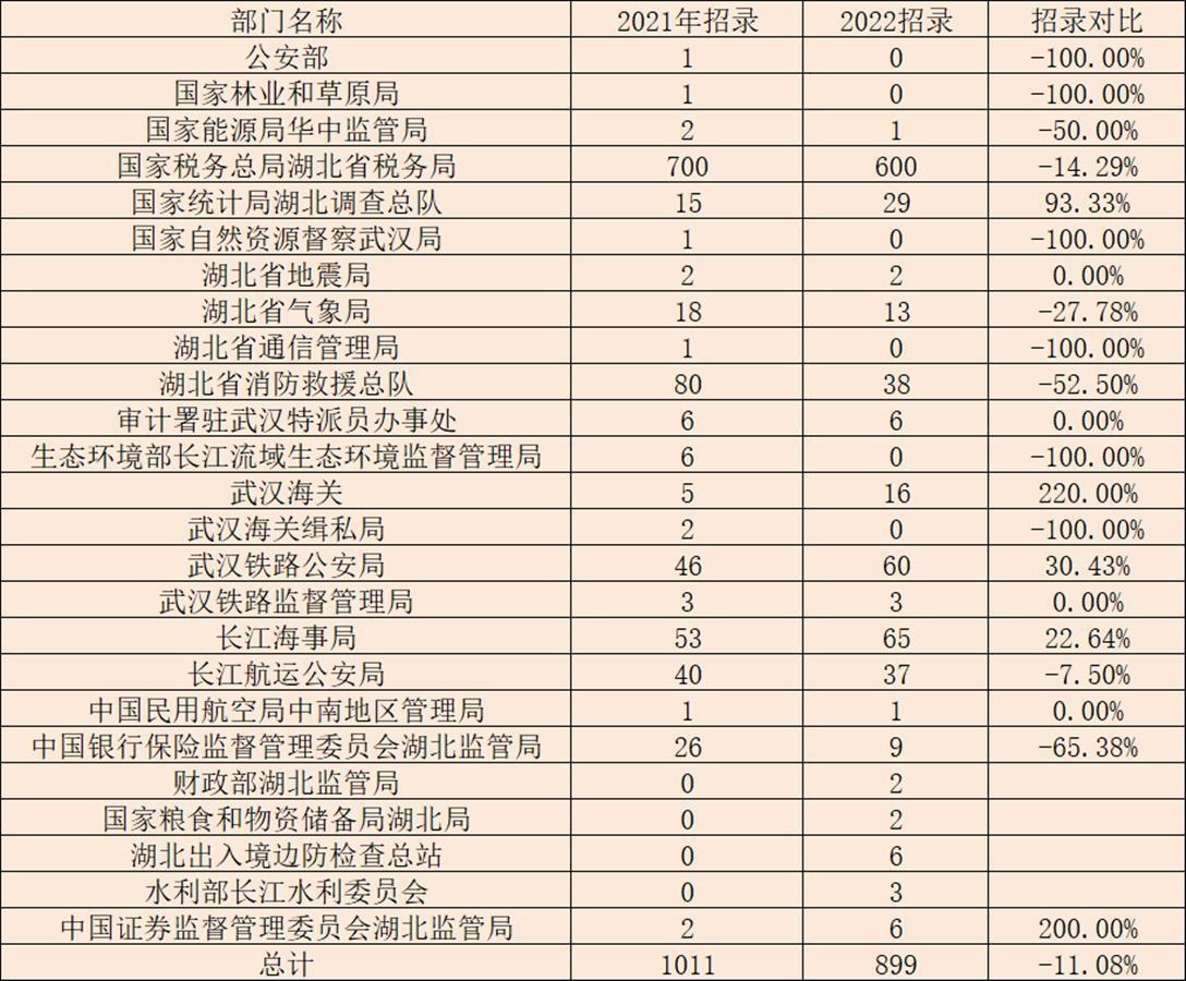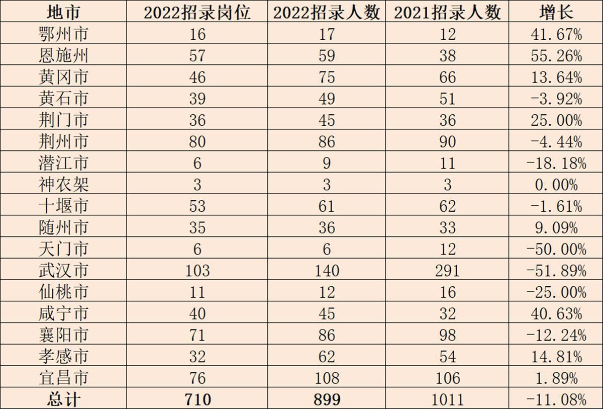 从湖北各个市州来看,恩施州招录人数增长最多,为55.26%;武汉市降幅最大,为51.89%。