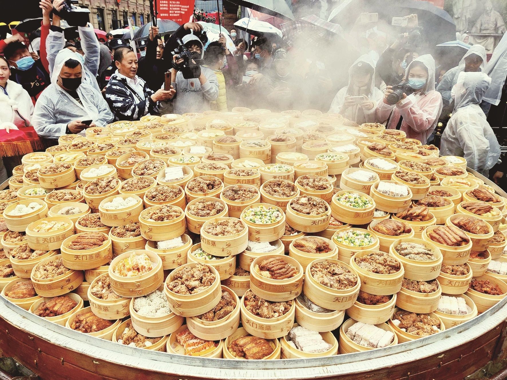 10月16日下午,“天门蒸菜”区域公用品牌发布会暨“天下第一蒸”走进武汉活动在汉街大戏台举行。现场千道蒸菜同时开笼,为市民带来一场蒸菜盛宴。“天门蒸菜”区域公用品牌正式发布,天门蒸菜在产业品牌化道路上迈出关键一步。