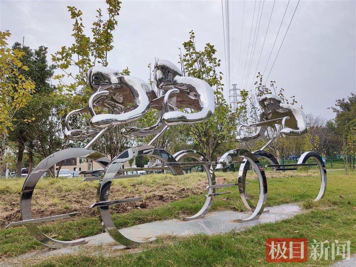 10月17日,恰逢周末,位于武汉市洪山区南李路的巡司河体育生态公园,迎来大批市民游客。网球场上,正在举行一场网球比赛;篮球和足球场地上,不少孩子在进行训练。散落园内的多处大型主题雕塑引得游客驻足观赏。