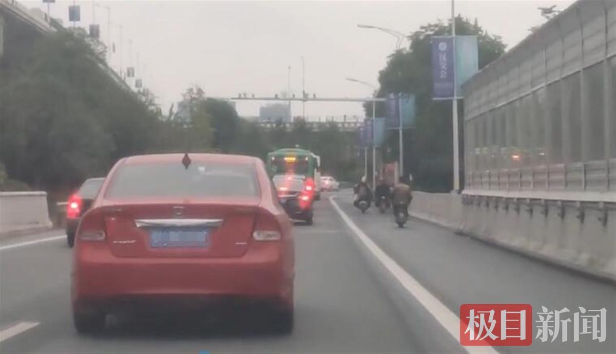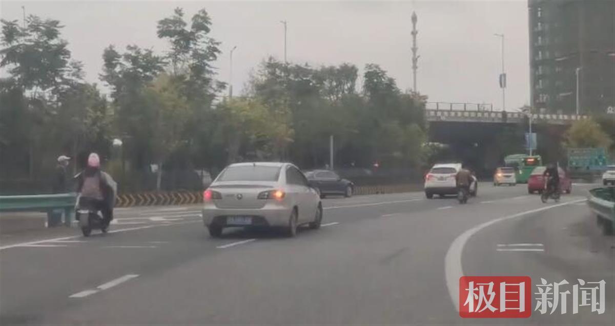 周女士告诉极目新闻记者,自己住在盘龙城日月山水小区,每天需要开车到江汉区某金融单位上班,府河大桥是必经之路。让她感到烦恼的是,几乎每天开车经过大桥,都会遇到一群不速之客,“一些电动车车主将车骑到桥上与机动车‘并驾齐驱’,不仅占据着最右边一条车道慢悠悠地行驶,还不时有两三辆车并排聊着天,全然不顾身后的机动车。”周女士说,这种情况在早晚上下班高峰时最为严重,她经常会看到三五成群的电动车扎堆行驶在桥面。“府河大桥上车辆都开得比较快,每次遇到前面有电动车时,机动车车主都不由自主地选择变道超到前面去,这极易引发事故。”