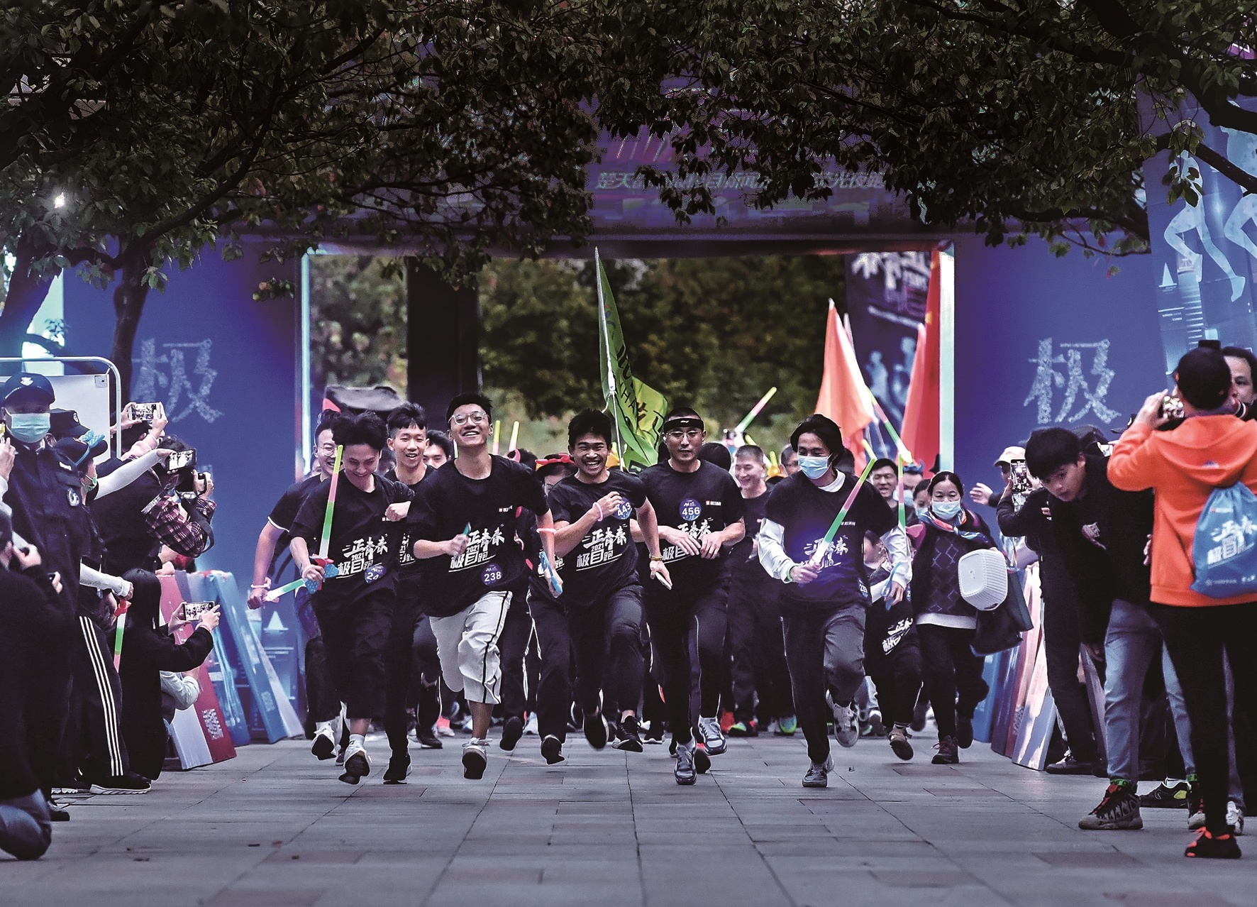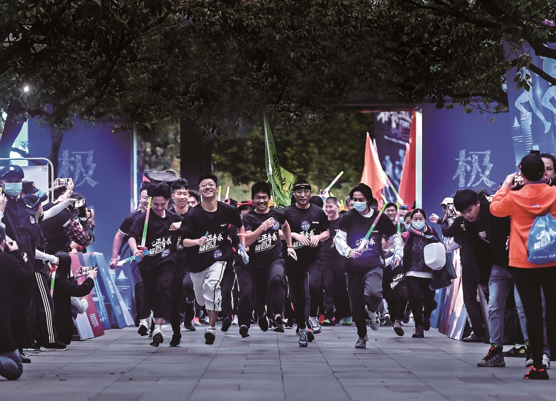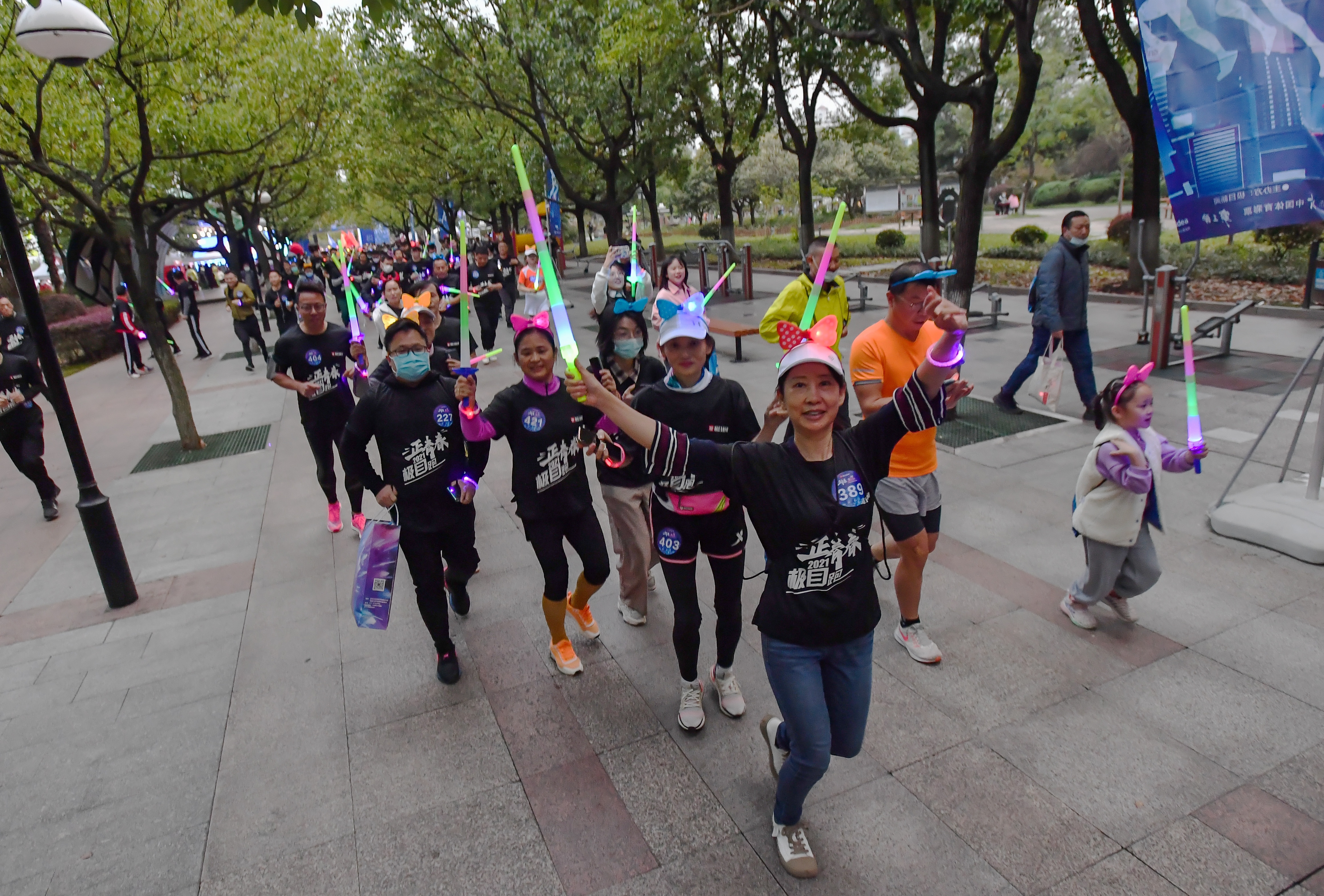 跑友挥舞荧光棒