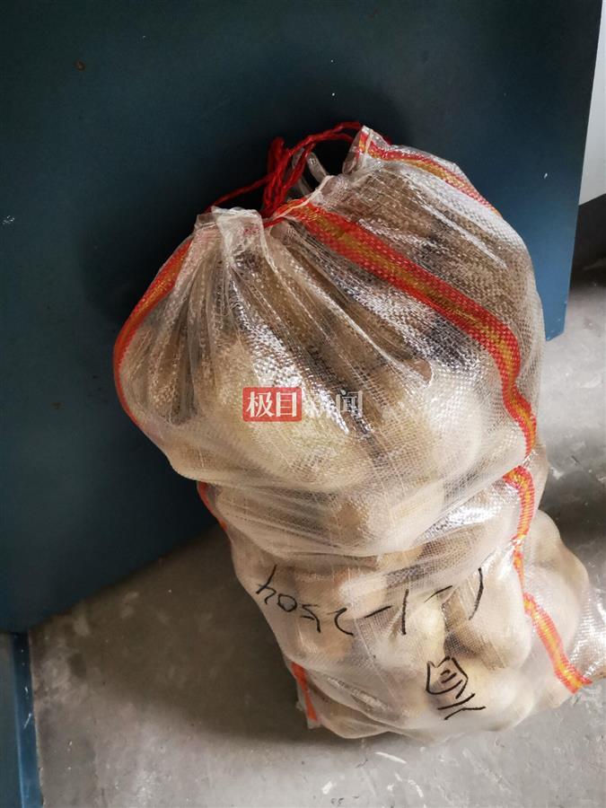 25楼楼道里蛇皮袋装的土豆(极目新闻记者 刘孝斌 摄)