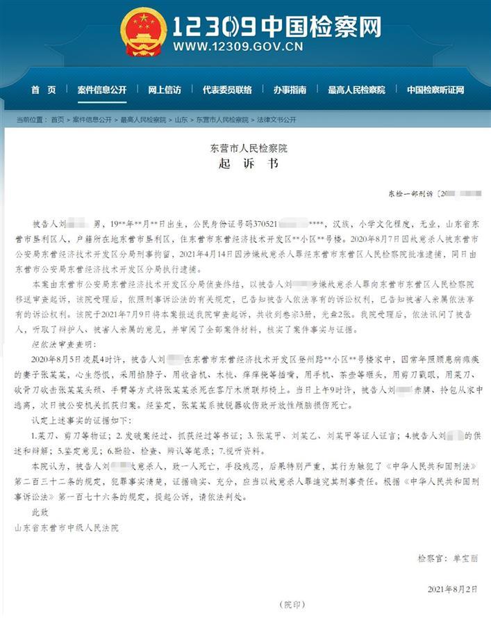因常年照顾患病瘫痪的妻子,山东东营男子刘某某心生怨恨,竟以极其残忍的手段将妻子杀害。日前,刘某被东营市人民检察院以故意杀人罪提起公诉。