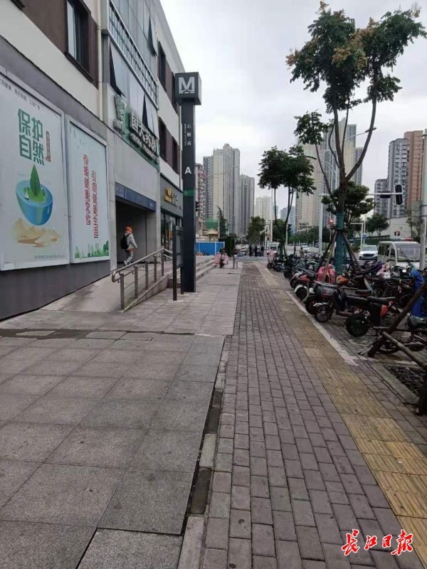 地铁六号线石桥站A出入口,占道的摊贩没有了。 记者李爱华 摄