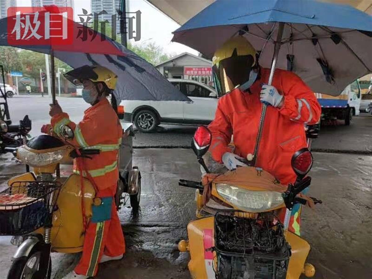 江岸区交通大队汉警快骑女队员杜旖旎和同事们向现场的环卫工人、城市管理部门相关负责人送出了《武汉交警致广大市民的一封信》,提醒广大环卫师傅遵守交通法规,注意交通安全。