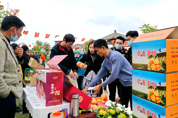 荆楚网(湖北日报网)讯(通讯员 涂大明 张修海 李琼 许光泽)碧波荡漾,橘橙飘香。10月16日下午,丹江口市第八届“库区情·桔乡行”武当蜜桔推介会暨“农民丰收节”石鼓玉皇顶分会场人声鼎沸,笑语喧天。