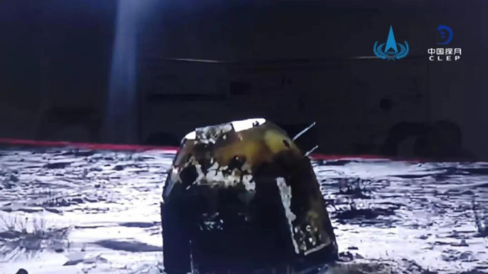 2020年12月17日凌晨,“嫦娥五号”返回器携带月球样品返回地球。国家航天局供图