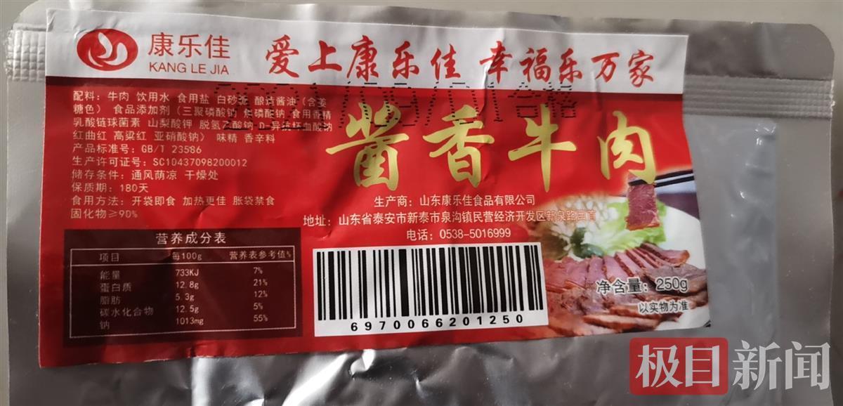 10月20日,村民龙先生(化姓)告诉极目新闻记者,今年中秋节,村里给村民发了一些食品作为福利。但其中山东康乐佳食品有限公司生产的熟食,出现了胀袋和变质,特别是其中的猪肘子和牛肉,村民食用之后出现腹泻打针的情况。