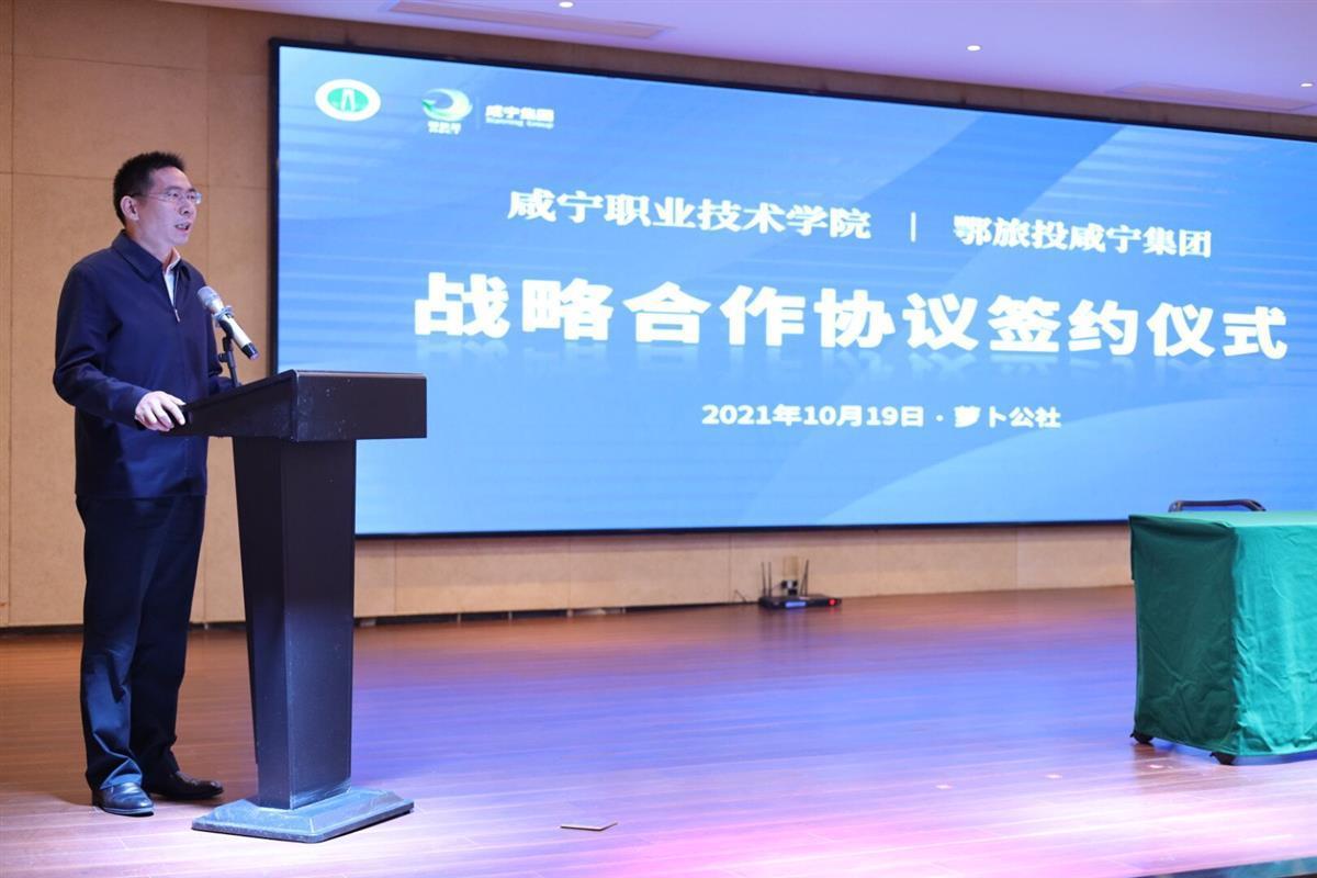 最后,鄂旅投咸宁集团王忠董事长与咸宁职业技术学院高焕清校长代表校企双方共同签署了合作协议,此次签约,将开启咸宁校企战略合作项目建设的新篇章。