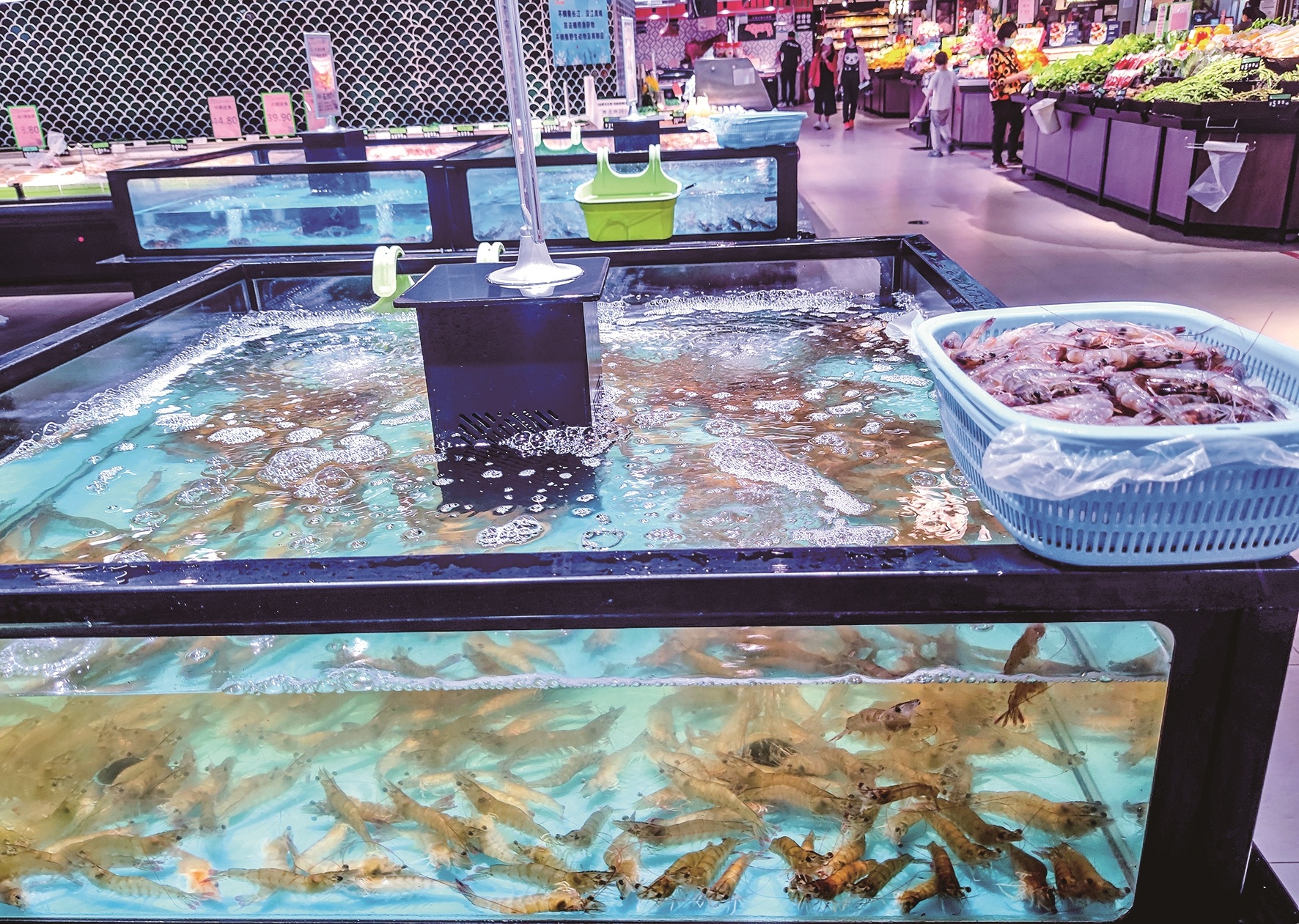 10月18日下午,极目新闻记者又在后湖大道沿线探访了三家有海鲜在售的生鲜市场。其中,在汉口城市广场附近的一家市场里,一位买了两斤鲍鱼和一斤扇贝的市民罗先生称,两样海鲜一共花了不到150元,而上半年时至少要多花100元。