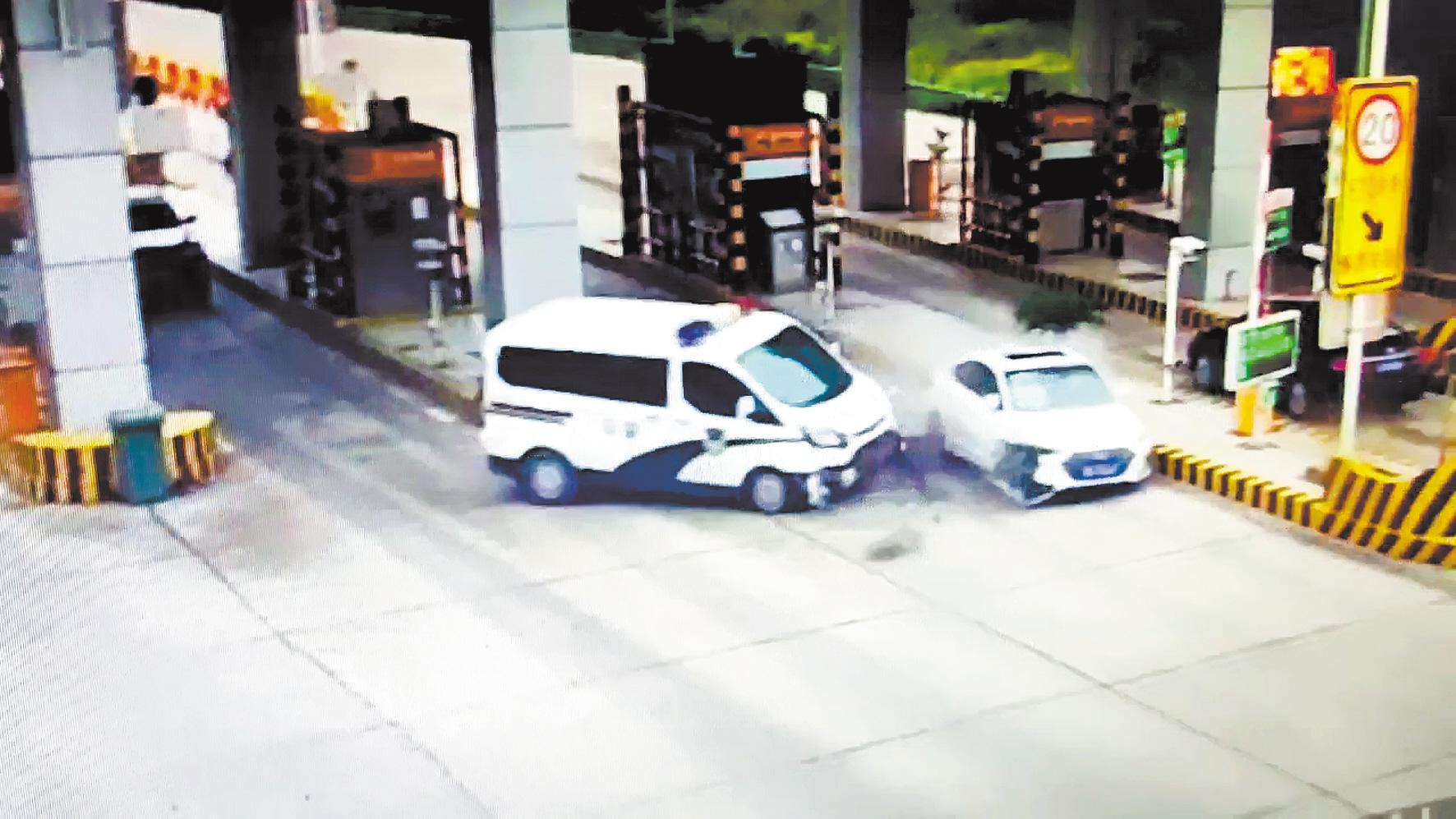 撞开警车瞬间